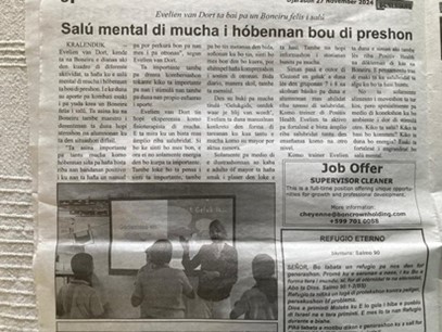 Interactieve lezing voor volwassenen: Positieve Gezondheid en het grote belang van taalvaardigheid. Deze activiteit heeft in twee sessies plaatsgevonden. Voor professionals in de zorg en voor professionals in het onderwijs. Grote betrokkenheid en vraag naar voortzetting en verdieping van dit onderwerp. In samenwerking met Stichting Lesa Ta Dushi zijn we in gesprek over een vervolg in 2025.