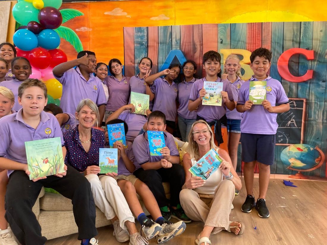Kinderboekenschrijver Evelien gaf, naast de dagelijkse auteurs¬bezoeken op de basis¬scholen als onderdeel van de lokale Kinder¬boekenweken, schrijf¬workshops aan lokale auteurs om vanuit hun eigen cultuur en op makkelijk lees¬baar taalniveau verhalen te schrijven. Ook gaf ze vanuit haar achter¬grond en visie als kinder¬fysiotherapeute lezingen over ‘meer beweging in het onderwijs’ en over dys¬lexie.