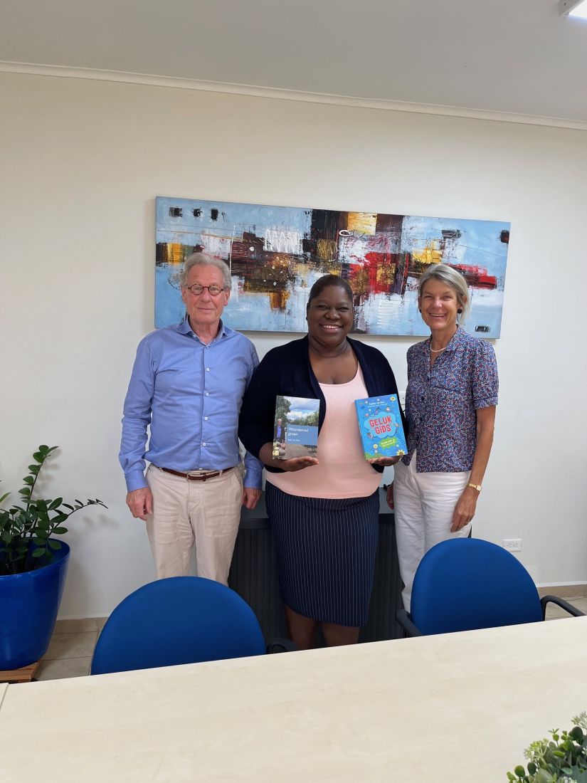 Gorsselnaren Henk en Evelien van Dort bezochten de eilanden Aruba, Bonaire en Cura¬çao. Op uitnodi¬ging van en in samen¬werking met lokale stichtingen en instel¬lingen (waaronder de open-bare bibliotheken op de drie eilanden) deelden ze vanuit hun achter¬grond als deskundige in ‘groene zorg’ (Henk) en schrijver van kinde¬rboeken en kinder¬fysiotherapeut (Evelien) hun ervaringen en enthou¬siasme. “We kijken terug op drie weken hard werken, veel fijne ontmoe-tingen met jong en oud, kennis delen, wederzijdse identiteits¬beleving, authentiek gemeenschaps¬gevoel en vooral respect en gedeelde inspi¬ratie.”